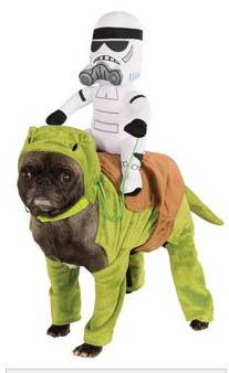 Proving that Lucasfilm was in an era that would license absolutely anything, here's a Dewback Dog Costume. This is apparently a real thing, and I for one am appalled. We used to be in a marketplace where the line had a little more integrity than this. I can only imagine how humiliated that dog will be when his labradoodle neighbor mocks him for having a Stormtrooper on his back instead of a Sandtrooper.