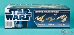 Presenting some packaged photos of the new Movie Heroes/Clone Wars 2012 Class II Wave 2 vehicles featuring the all new Naboo Starfighter, a repainted Republic Tank, and a re-issued Anakin Skywalker Jedi Starfighter. On a side note, that Republic Tank package art featuring Yoda jumping around like a killer jumping bean is too awesome for words.