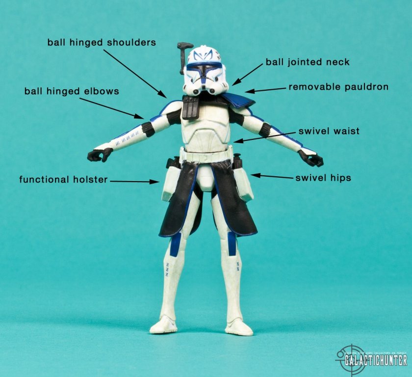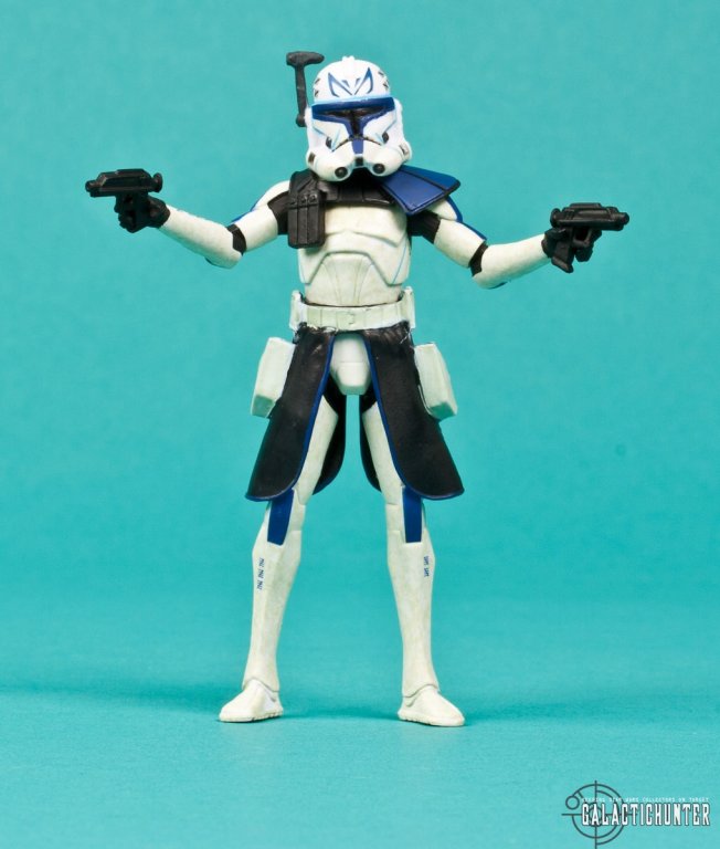 Rex's pauldron is removable if you're inclined and both hand blasters fit snuggly in his hands. The rear insertion for the CW2 Clone Rocket Pack attachment is still there so he can utilize that Clone's accessory if needed like Commander Wolffe.
