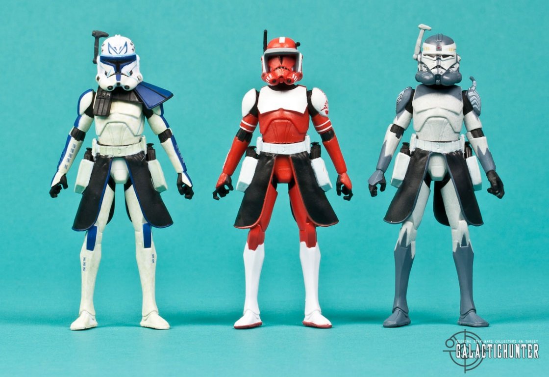 TOPPING THINGS OFF: Commander Fox is another nicely designed and aesthetically pleasing Clone warrior to join the ranks of the other Phase II Commanders released in 2012. Whether intentional or not, he has Target DNA for his color scheme and looks awesome on display with nice painted details, although there looks to be missing deco on his helmet. Unfortunately, his poseability is limited due to a lack of knee and ankle articulation that doesn't translate too well for a character meant for dynamic display. Still, make no mistake, he'll be popular on the pegs along with the other Clone Commanders with 8 articulation points. The most recent case assortment shows him being allocated 2 per case, and there will be a few collectors who will easily buy and keep 2 of of this figure. The Fox chase will definitely be a bit of a challenge from the onset.