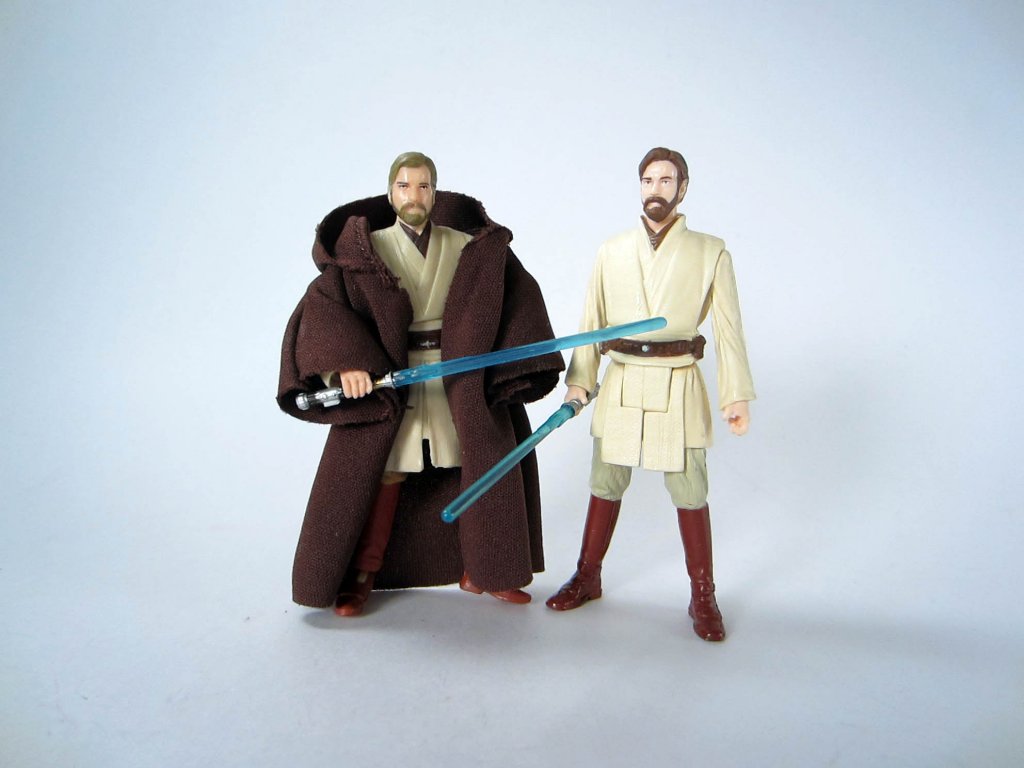 There have been dozens of Obi-Wan Kenobi figures from over the years, but the Revenge of the Sith version may be one of the most plentiful with over a dozen releases, each of which has a different accessory or other small change. This one isn't the least articulated, but it does feel simpler and retains the "1978" pose of most Kenner action figures until the 1990s. This is the first Obi-Wan Kenobi from ROTS with the ability to sit down without bending a piece of the figure out of shape, and this one stands unassisted much more easily than others. We're picturing him with the 2006 The Saga Collection release, which has 14 points of articulation and a cloth robe. It also cost about $6.99 in 2006, so that's inflation for you.
