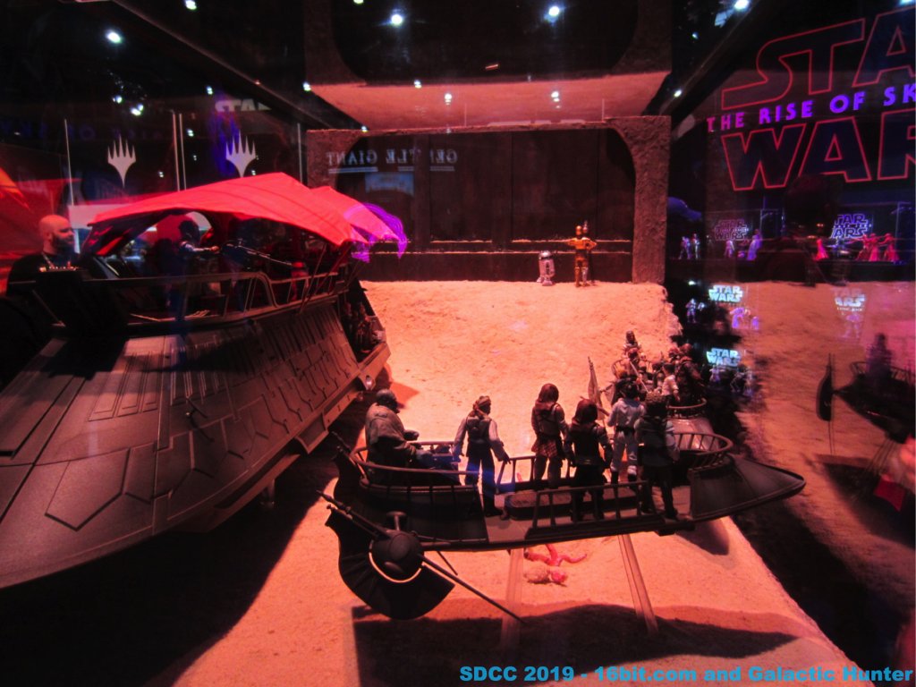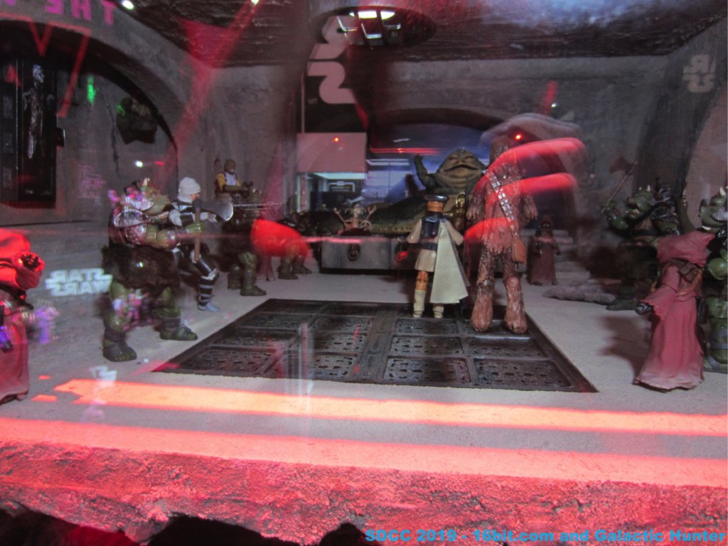 Jabba's palace in 6-inch scale, complete with a Rancor, and the Barge in 3 3/4-inch scale, were on display in full force! Packed with modern and classic figures as well as what we have been informed were custom figures, there's not a lot of new product here - but the diorama itself is pretty spectacular. Check it out!