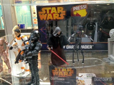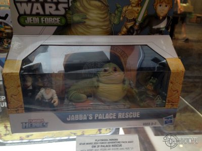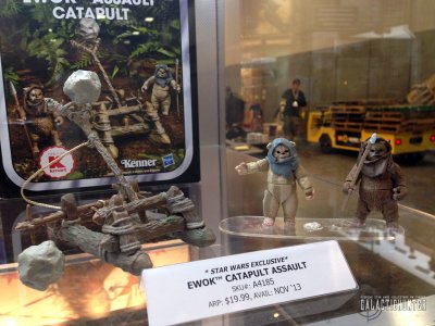 We've got some early shots of the Hasbro booth, including a peek at the Amazon and ToysRUs exclusive vehicles, the K-Mart Scanning Crew and Ewok Catapult set, and much more. Marvel at the beauty of low quality iPhone pics after the jump, and stay tuned for our Preview Night report and pics later this evening!