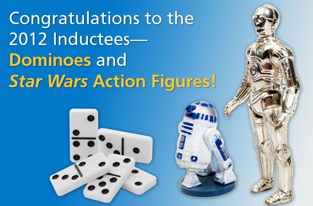 It's been way overdue, but Star Wars action figures have been inducted to the National Toy Hall of Fame for 2012, along with Dominoes. With over $20 billion in sales generated since 1978, Star Wars action figure toys beat out Clue, Lite Brite, and the Magic 8 Ball for the honor.