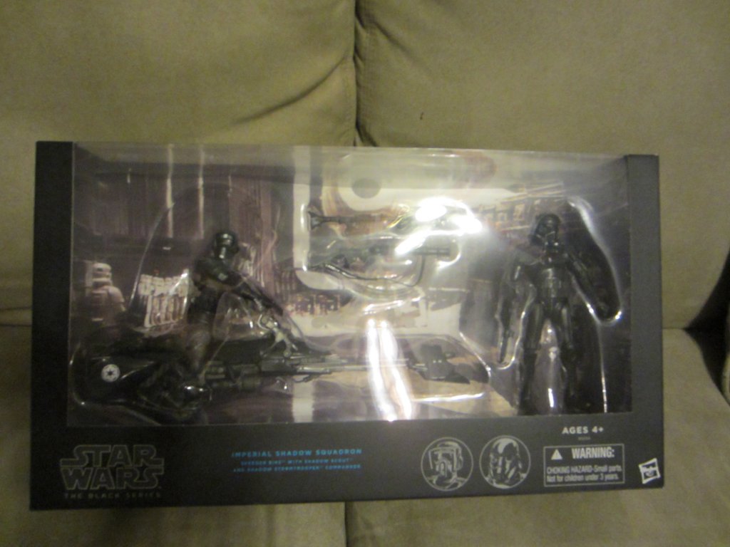 For those who missed the boat, the set includes a Scout Trooper, Sandtrooper Shadow Stormtrooper Commander, and Speeder Bike in black.