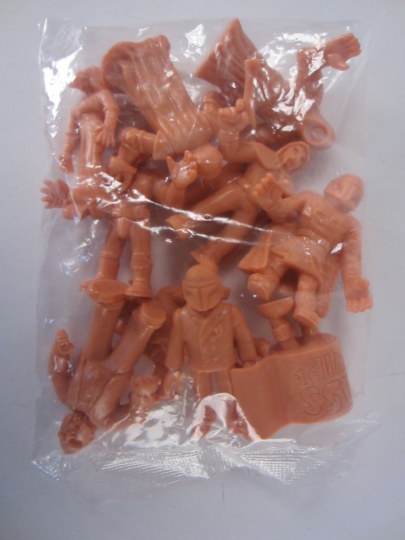 There are 15 figures. 10 are currently available in flesh, with 5 more in clear and glow in the dark as Kickstarter exclusives - for now. The names aren't exactly always appropriate for children, but the M.U.S.C.L.E.-inspired minifigures are about 2-inches tall and will look great next to your Amoian, Claw, or Sunshine. Here's a quick shot of the sack the fleshies came in.