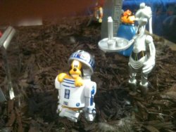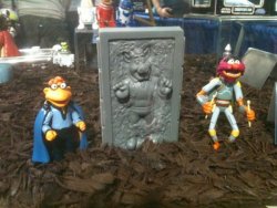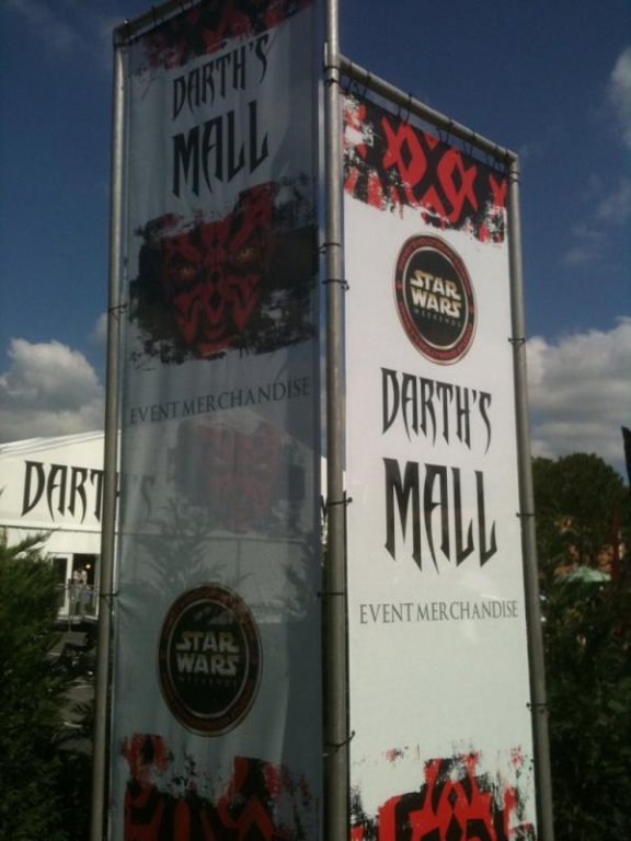 Our pal DarthChuckMc trasmitted over Twitter some photos from Star Wars Weekends opening day and their "Darth's Mall", which featured some previews of Droid Factory Droids and new Star Wars Muppets figures.