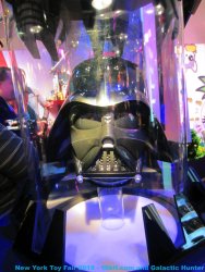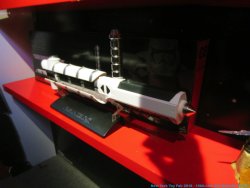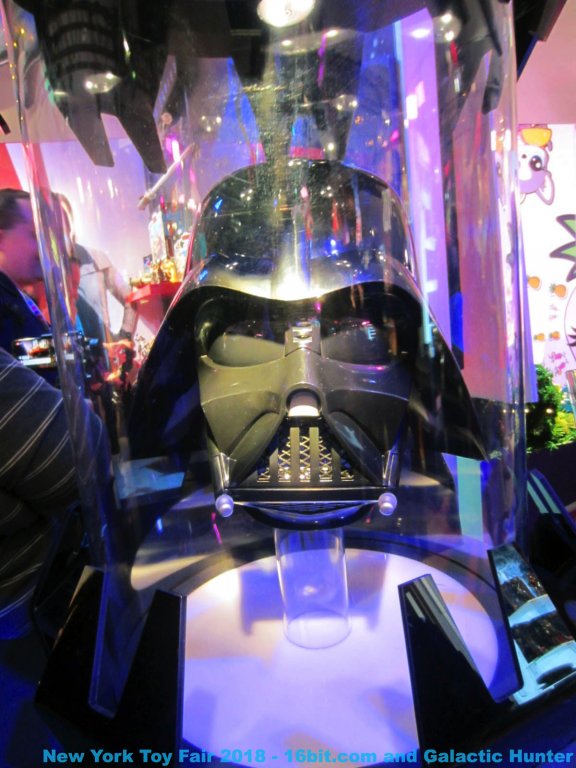 Hasbro has two new "prop" toys this time around. One is a giant Darth Vader helmet replica, and it's huge. It was displayed in a big round glass case, but the actual toy will come in a black cardboard box.