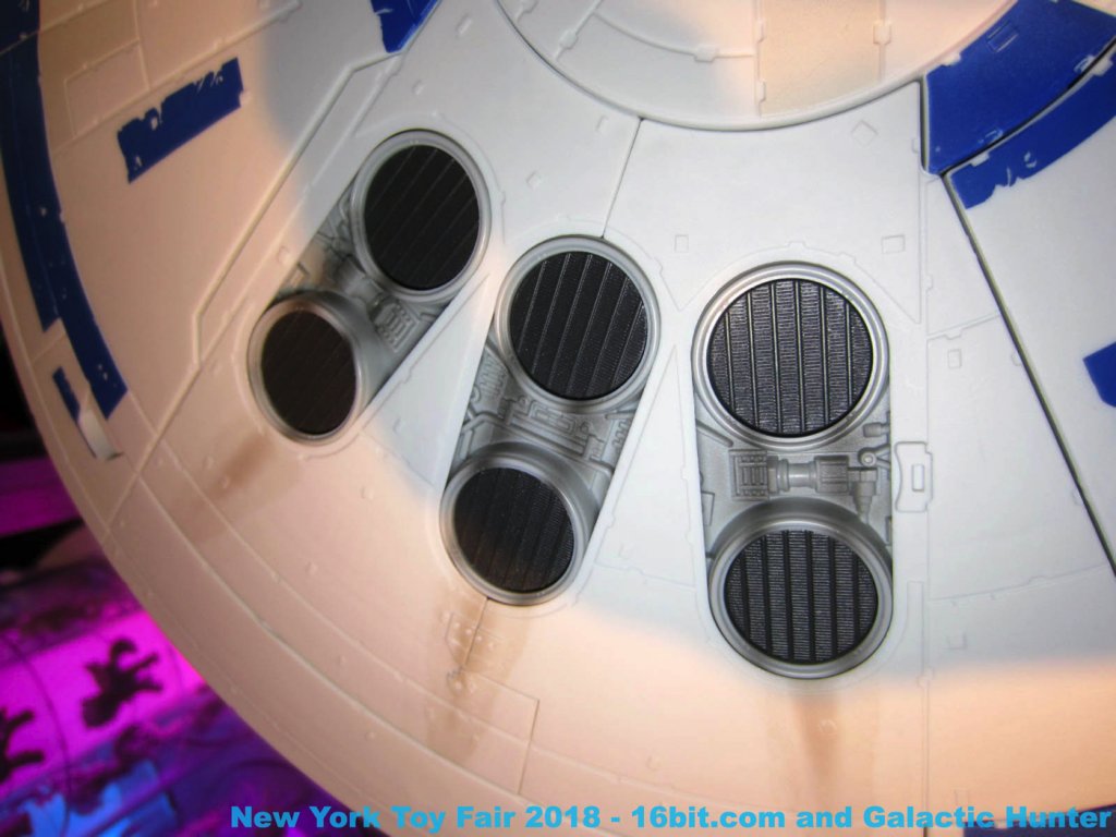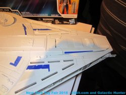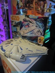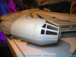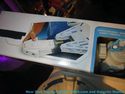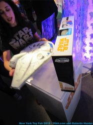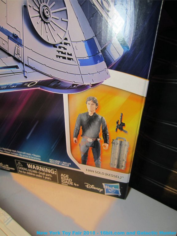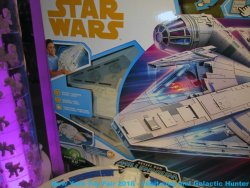 While putzing around Hasbro's showroom, I got a look at the decent - not huge - new Millennium Falcon. What was interesting was that a lot of it was blocked out - there's a thing between the mandibles that could well be cargo or an escape pod. The box doesn't specify in its current state, but we do get a look at the ship from oh so many angles. Packaging, too. You want to see this. Read on.