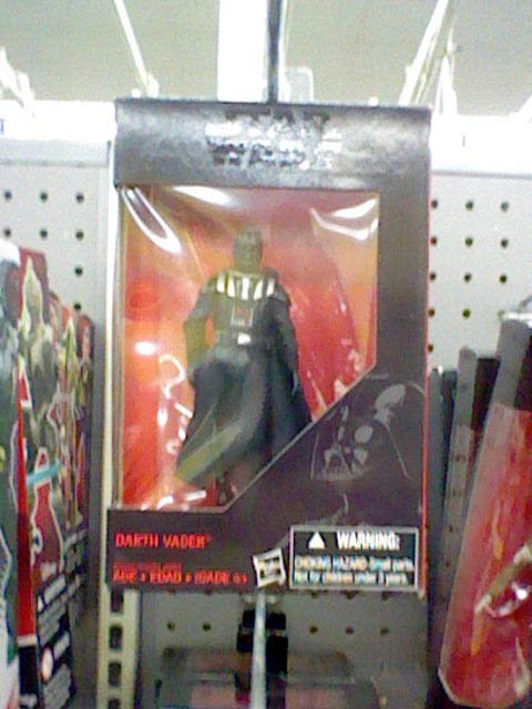Each figure is $12.93, and comes boxed. Darth Vader is a repack of the classic 500th Darth Vader mold, and now we know the dome is not glued down - the sample I saw was floating around freely in the box, the figure loose and the helmet wedged down below. Chewbacca appears to be a repack of the 2004 Original Trilogy Collection Vintage figure, which was $9.99 (and cheaper) and also repacked several times since then. I was not able to confirm if Luke has any changes, as he was not available at the stores I examined.