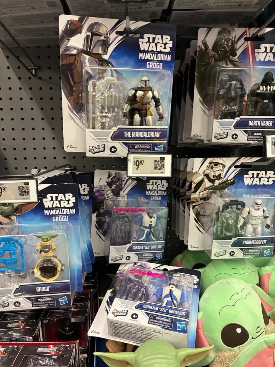 Good news - Walmart stores in the United States are resetting their toy aisles! Numerous items from Hasbro and other toymakers are on the shelves for The Mandalorian and Grogu, including the new, large, 4 1/2-inch scale ActionVerse. Bad news: there was no sign of any The Vintage Collection action figures to be seen.